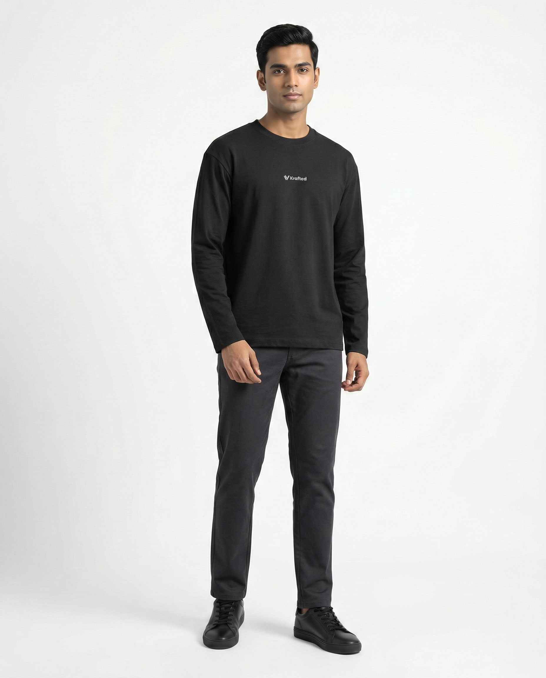 This Men's Full Sleeve T-Shirt is the definition of a wardrobe staple done right. We have stripped away the noise to focus on what matters: a perfect fit, premium feel, and subtle branding. Featuring the VKrafted logo centered neatly on the chest, this tee offers a modern, minimalist aesthetic that looks effortlessly cool whether you are dressing it up or keeping it casual.